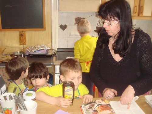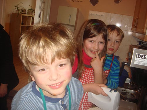 Erst musste natürlich das Mittagessen in die kleinen Bäuche und danach ging es endlich los. Gemeinsam mit ihrer Erzieherin und mit Hilfe einer ehrenamtlichen Kollegin durften die Kinder die Küche des Cafés in Beschlag nehmen, während die Gäste im Café geduldig auf die Ergebnisse warteten.