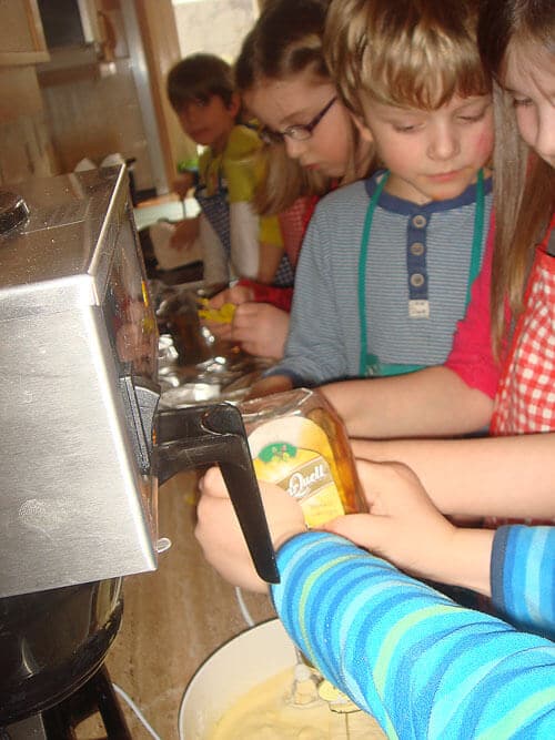 Na, und dann waren die ersten Waffeln fertig. Auch hier musste das Vorkosten natürlich in der Küche von den Jüngsten geleistet werden. „Hm“ und „lecker“, hier und da ein kleines verzeihliches Schmatzen – es war gelungen: Die Honigwaffeln kein Experiment mehr.