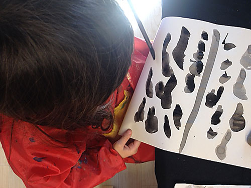 – Shodo – Japanische Kalligraphie: Die Kinder lernen die vier Kostbarkeiten kennen (Haarpinsel, Reispapier, Tuscheriegel und Tuschereibestein), die für die kalligraphische Arbeit notwendig sind. Die Beschäftigung mit Shodo verschafft den Kindern, Einblick in die fernöstliche Denk-, Lern- und Arbeitsweise. Die Feinmotorik wird weiter entwickelt und eine andere Körperwahrnehmung geschult. Im Vordergrund stehen die spielerische Entdeckung und das praktische Umsetzen des Neuen, kombiniert mit meditativer Entspannung