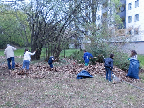 Allen beteiligten hat es so viel Spaß gemacht, dass wir die Aktion am 11. April 14 wiederholen werden. Es liegt noch eine Menge Laub auf der Wiese, das noch zusammengeharkt werden will. Ist das geschafft, freuen wir uns auf schöne gemeinsame Stunden und viele Erlebnisse im Freien und auf den Sommer in diesem Jahr!