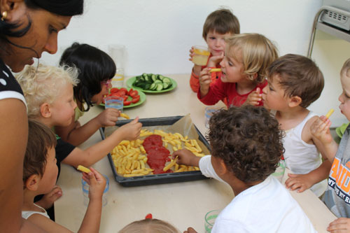 Und außerdem verging der Tag viel zu schnell … wir ließen den Tag im Vogelpark mit einem leckeren Eis ausklingen und fuhren am frühen Abend zurück in unsere Kita. Dort tobten wir uns noch mit Fingerfarben aus und aßen gemeinsam leckere Bio-Pommes.