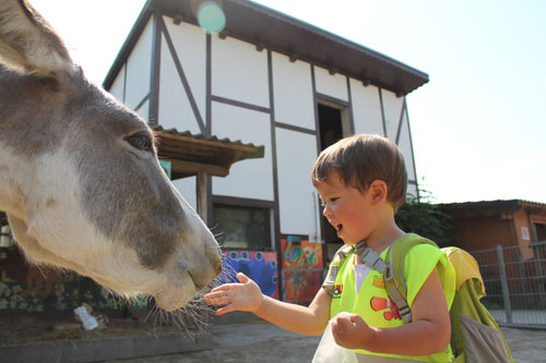 Wir starteten unseren geplanten Ausflug zum Vogelpark in Teltow. Mit dem Bus und der S-Bahn erreichten wir unser Zielort. Dort entdeckten und beobachteten wir diverse Stalltiere und Käfigtiere wie: Esel, Ziegen, Schafe, Schweine, Gänse, Hühner, Papageien, Kaninchen und  Fasan. Besonderen Spaß bereitete uns das Füttern, denn sie nahmen uns ganz vorsichtig die Karotte aus der Hand.