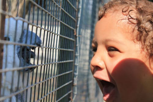 Die Papageien waren hochinteressant, besonders einer von vielen, denn er sprach uns Wörter nach und kam ganz dicht an das Käfiggitter, so dass wir ihn von Angesicht zu Angesicht bewundern konnten.