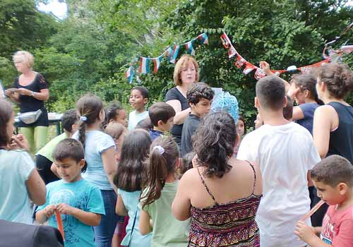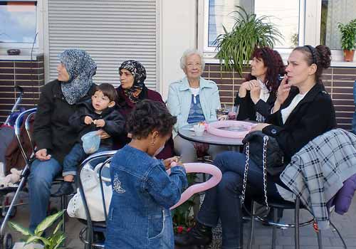 Das der „kieztreff“ so lebhaft ist, ist insbesondere der bunten Mischung vieler Nationen und Kulturen zu verdanken. Hier verkehren türkische, arabische, baltische, asiatische und polnische Familien. Die Unterschiede zwischen den Kulturen werden in den Alltag mit einbezogen. Muslimische Familien zum Bespiel feiern mit den Einheimischen Weihnachten und Ostern, die christlichen Kinder werden zum Zuckerfest von manchem Gast mit einem kleinen Geschenk bedacht. Es herrscht eine große Akzeptanz untereinander. Aber auch Neugierde und Interesse an fremden Kulturen. So hat das Feiern einen besonderen Stellenwert in der kleinen Einrichtung. Da die Wohnungen der Familien oftmals zu klein sind, verlegen sie ihre privaten Festlichkeiten in den „kieztreff“. Familienfeiern aller Art und Kindergeburtstage werden sehr oft ausgerichtet. Rita Schumann hilft mit ihren ehrenamtlichen Kräften, dass die Mütter einen schön geschmückten Raum präsentieren können. Das Buffet und was man so zum Essen benötigt bringen die Familien selber mit. Der Raum ist für diese Feiern so gefragt, dass man unbedingt einen Termin reservieren muss und die Einschränkung akzeptiert, dass nur während der Öffnungszeiten gefeiert werden kann. Macht aber nichts – genauso wenig, wie die Tatsache, dass meist mehr Gäste dabei sind, wenn sie schon mal in der Einrichtung sind. Vor der Tür muss niemand stehen. So passiert es, dass bei der Babyparty oder Taufe, der ein oder andere alleinstehende Senior dazu geladen wird oder die Trauerfeier durch Kinderlachen gelockert wird – das ist im „kieztreff“ nun einfach mal so. Abgrenzungen finden kaum statt, eher das Gegenteil kommt zum Tragen.