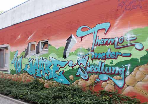 kieztreff_41Wenn sie auf die lange Wand an der Seite des „kieztreffs“ schaut, ist Rita Schumann besonders stolz. Dort ist ein riesengroßes Graffiti zu sehen, dass 2011 im Rahmen einer Veranstaltung von ihrem Kollegen und Graffiti-Künstler Sebastian Unger gesprüht wurde. Es ist immer noch unbeschädigt und das empfindet sie als eine Art Respekterweisung gegenüber der kleinen Einrichtung. Der „kieztreff“ ist eine Nachbarschaftseinrichtung in der Thermometersiedlung in Lichterfelde-Süd und feierte in diesem Jahr unter der Trägerschaft des Stadtteilzentrum Steglitz e.V. und in Kooperation mit FAMOS e.V. Berlin sein 10-jähriges Bestehen. Rita Schumann ging 2006 das erste Mal durch die Tür des Treffpunktes.