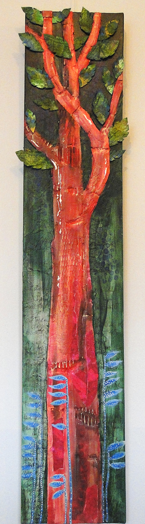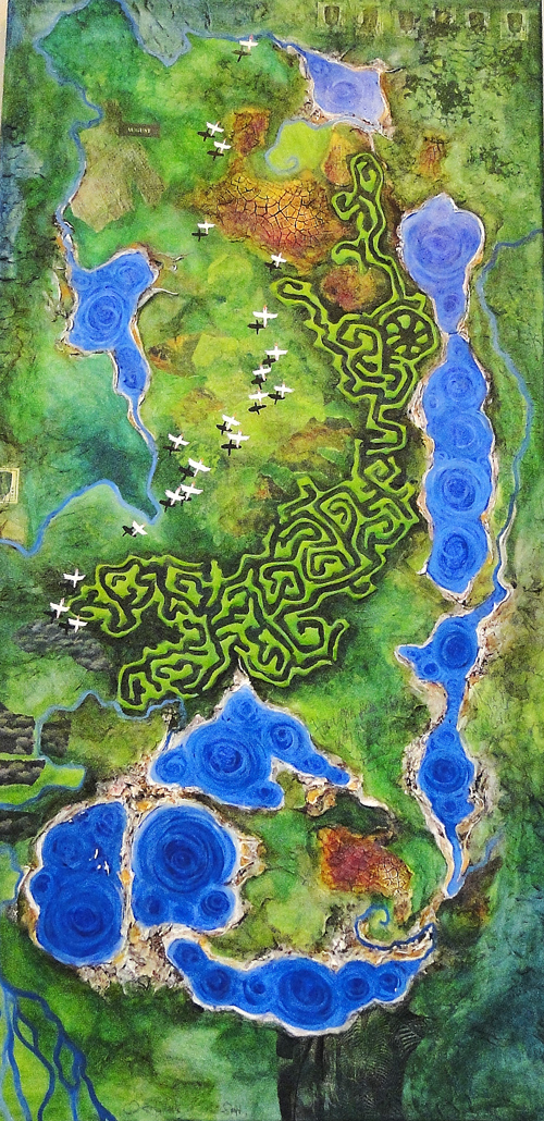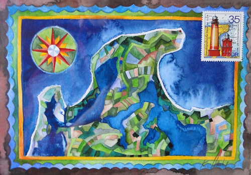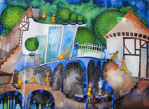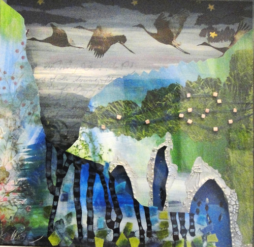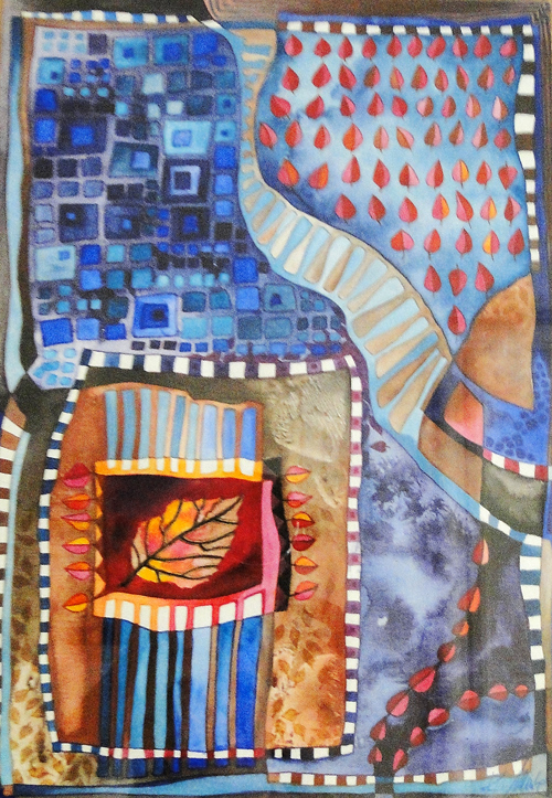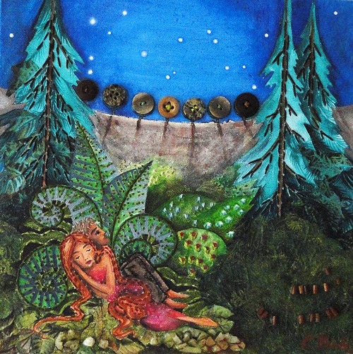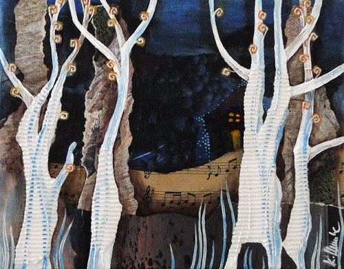 Hin und wieder muss sie sich mit der erstaunten Frage auseinander setzen, ob sie denn gar nichts für sich selber als Erlös für die Bilder behalten will. Die Kunst hat in dieser Familie jedoch einen anderen Sinn als das fertige Ergebnis zu sehen. Der Prozess zum Produkt, zum Kunstwerk in jeglicher Form, gehört zum festen Bestandteil der gemeinsamen Zeit. Der Vater, ebenfalls Lehrer, arbeitet mit Leder. Die Kinder experimentieren, probieren, lassen sich begeistern und sind unheimlich stolz, wenn sie zum Beispiel beim Filzen später mit selbstgemachten Hausschuhen herumlaufen können. Die gemeinsame Aktion, die Beschäftigung mit Kunstformen, aber auch die Auseinandersetzung mit unterschiedlichen Materialien, ist der Kern für den familiären Handlungsplan. Für sich selber sieht Katrin Munke ihre Bilder als eine Art Tagebuch. Dort kann sie ihre Sehnsüchte, Wünsche und Ideen hineinarbeiten. Sie mag vielschichtige Bilder, die im Detail zeigen, was sie ausdrücken möchte. So lohnt es sich immer ein zweites Mal hinzuschauen und den Kleinigkeiten, die zu finden sind, Beachtung zu schenken.