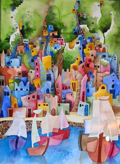 Ich ging ins Gutshaus Lichterfelde, ein Haus mit dem Schwerpunkt auf nachbarschaftlicher Arbeit. Ich bin oft und gerne dort, auch weil ich für den Träger, das Stadtteilzentrum Steglitz e.V., arbeite. Diesmal blieb ich aber gleich im Eingangsbereich hängen und konnte nicht weiter gehen. Dort hing, wie so oft, eine Bilderausstellung und die Bilder haben mich gleich so gefangen und angesprochen, dass ich sie alle studieren musste. Nach der Runde kam ich zu einem Rahmen, in dem die Künstlerin sich vorstellte. Sie schrieb unter anderem, dass der Erlös aus den Verkäufen der Bilder zu 100 % der UNO-Flüchtlingshilfe gespendet werden würde. Als ich den Text gelesen hatte, stand mein Entschluss fest, dass ich die Frau gerne kennenlernen wollte. Welcher Künstler stellt seine komplette Ausstellung einem guten Zweck zur Verfügung?
