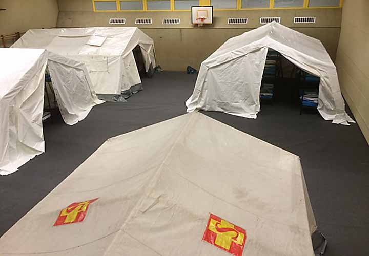 Vorgeschichte: Zwei Tage vor Weihnachten wird die Nachricht bekannt, dass eine Turnhalle in unserer Nähe beschlagnahmt ist und zwischen Weihnachten und Neujahr bis zu 200 Flüchtlinge untergebracht werden. Es muss Hilfe organisiert werden und dies trotz der Feiertage ziemlich schnell. Klar ist, dass die Menschen, die ankommen werden, nichts weiter besitzen, als das was sie anhaben oder tragen können. Es ist eine doppelstöckige Halle, also zwei übereinander. Im oberen Teil werden mit einer Trennwand Betten aufgestellt. Einzelbetten oder Stockbetten. Die untere Halle wird vorerst nur mit Bierbänken und -tischen im hinteren Teil bestückt. Über alle verfügbaren Netzwerke wird von Thomas Mampel, Geschäftsführer des Stadtteilzentrums Steglitz e.V., ein Spendenaufruf veröffentlicht und mit viel Unterstützung auch geteilt und verbreitet. Die Spendenannahme wird von Veronika Mampel organisiert. Die Spenden werden im KiJuNa – Kinder-, Jugend- und Nachbarschaftszentrum abgegeben und gesammelt. Die Spendenbereitschaft am ersten Weihnachtsfeiertag ist überwältigend.