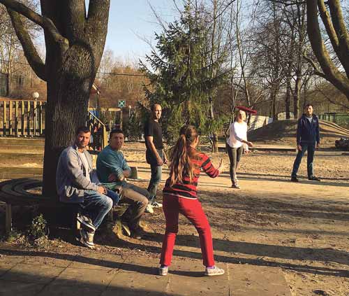 Sportliche Aktivitäten fallen ebenso in ihren Bereich. So haben sie beispielsweise mit Händen, Füßen und mit ein bisschen Englisch, den Flüchtlingen die Spielregeln für ein Frisbee-Spiel erklärt. Das hat viel Spaß gemacht und hat viel zu lachen gegeben. Mit den kleineren Kindern haben sie Seifenblasen aufsteigen lassen und auch dabei viel gemeinsamen Spaß erlebt. Kleine Beispiele ihrer Arbeit, die für alle ein großer Gewinn sind. Berührungsängste haben sie von Anfang an nicht gehabt. Zu Beginn haben sie viel beobachtet, aber schnell für sich festgestellt, dass ihnen alle Flüchtlinge in der Halle sehr freundlich und nett entgegengekommen sind. Lina erinnert sich, dass sie das erste Mal, als sie von der Halle nach Hause ging, gedacht hatte, dass es gar nicht schwierig gewesen sei.
