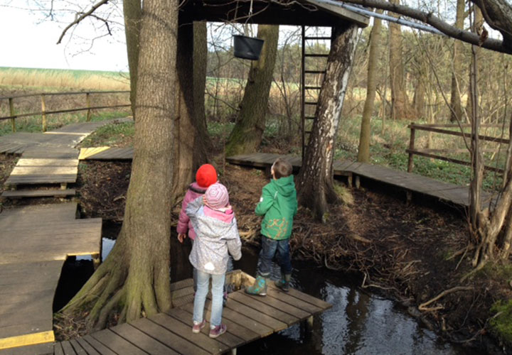 Die entdeckerfreudigen Kinder stürzten sich auf die urigen Unterkünfte, packten ihre Koffer aus, erkundeten ihren neuen Lebensraum und machten sich anschließend ausgehungert über die leckeren Nudeln mit Tomatensoße her. Nach dem Essen wanderten alle neugierigen Abenteurer in die strandähnliche Oase des Baitzer Lebens.