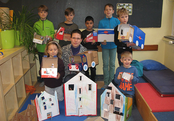 Unsere Projekte zielten darauf hin den Kindern zu zeigen, dass aus alter Pappe noch viel herauszuholen ist. Der Kreativität und dem Spaß sind hierbei keine Grenzen gesetzt, Nachahmer erwünscht! Selbstverständlich haben wir uns mit den Kindern auch über das Thema Papier unterhalten: Woher kommt Papier? Was ist alles aus Papier? Was ist Recycling? Mit diesen und anderen Fragen haben wir uns beschäftigt und somit zum Nachdenken und Nachbasteln angeregt.