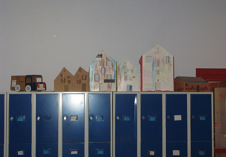 Die Fassaden werden im Flur in Haus III von den Kindern und Eltern bewundert und erinnern an die wundervollen Momente der spannenden Ralley sowie die Möglichkeit, Papier weiter zu nutzen, um unsere Umwelt zu schonen.