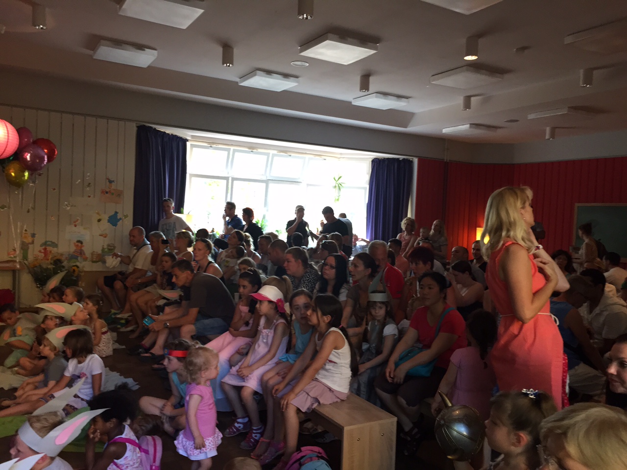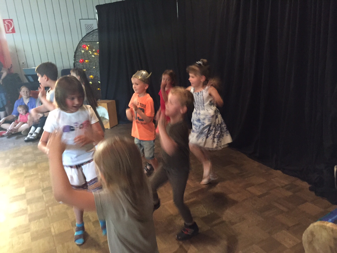Nach der Begrüßungsrede kamen alle Kinder mit ihren Darbietungen auf die Bühne. Angefangen von den Allerjüngsten mit ihrem Sonnenlied und dem Lied Bruder Jakob, es folgten die Saalkinder auf den Trommeln mit Bruder Jakob in verschiedenen Sprachen, anschließend sangen ein paar Kinder der Ältesten das Lied von der Eiskönigin vor. Das Theaterstück „Einer ist zu viel“ war ein Genuss der Ältesten.