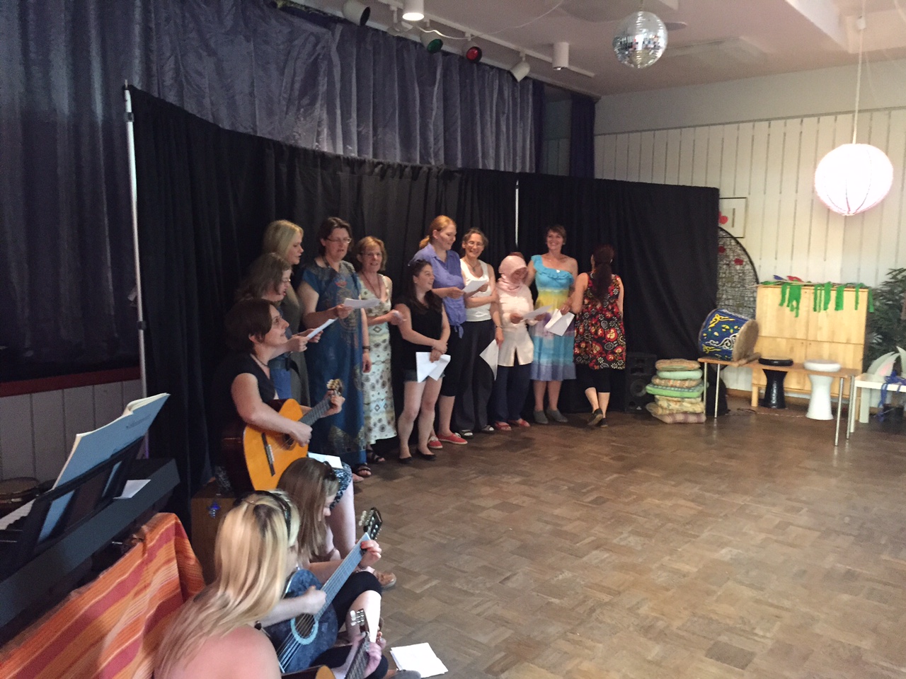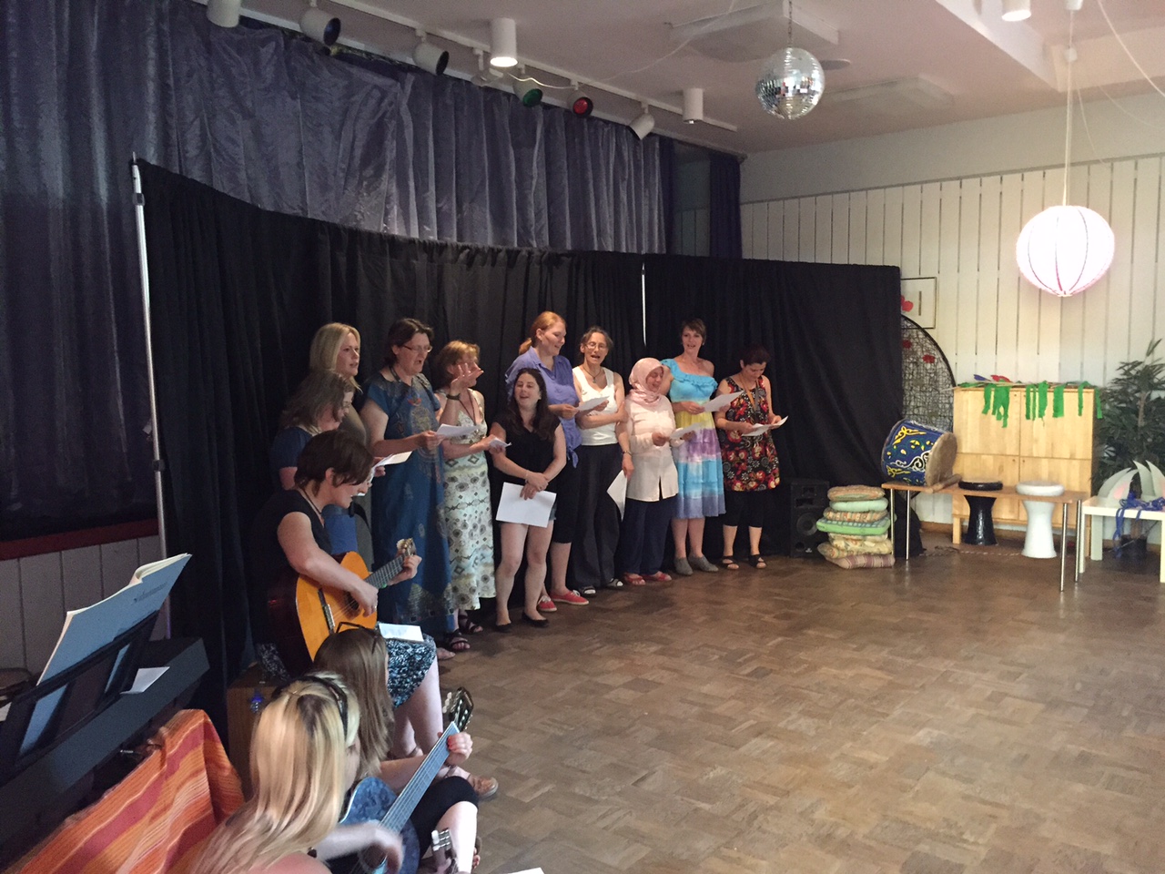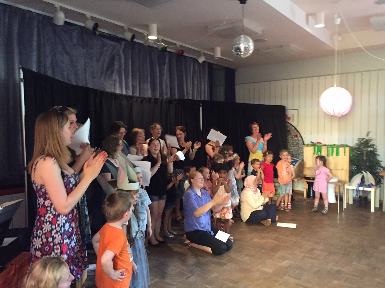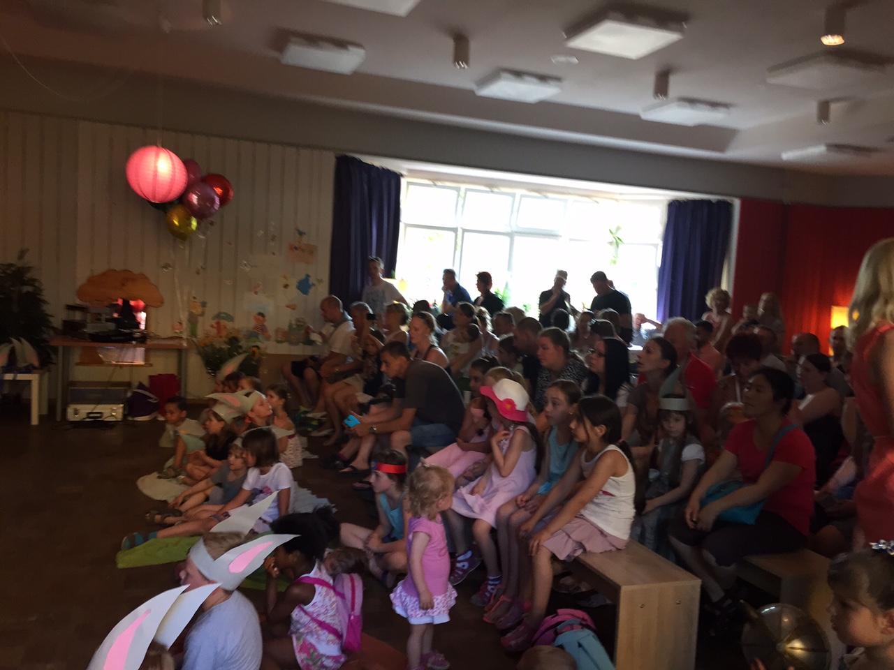 Gegen 16.00 Uhr eröffneten wir Gruppenbegleiter unsere Bühne mit einem Begrüßungslied unserer Morgenkreise und setzten unseren Gesang mit dem Lied „Das Lied über mich“ fort. Kinder und Eltern sangen und klatschten freudig mit.