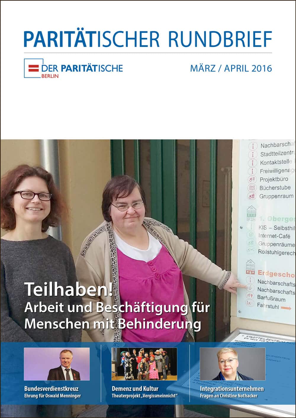 Der Europäische Protesttag für die Gleichstellung von Menschen mit Behinderung am 5. Mai hat uns den Anlass für den Schwerpunkt dieses Paritätischen Rundbrief geliefert: Das Recht auf Arbeit und Beschäftigung für Menschen mit Behinderungen. Im Paritätischen Wohlfahrtsverband Berlin sind zahlreiche Unterstützungsdienstleister für behinderte Menschen organisiert: Integrationsfirmen, Integrationsfachdienste, Werkstätten für behinderte Menschen, Beschäftigungsstätten. Wir wollen zeigen, was diese für behinderte Menschen tun, aber auch, was sie noch brauchen, um weiterhin genauso gut oder besser arbeiten zu können.