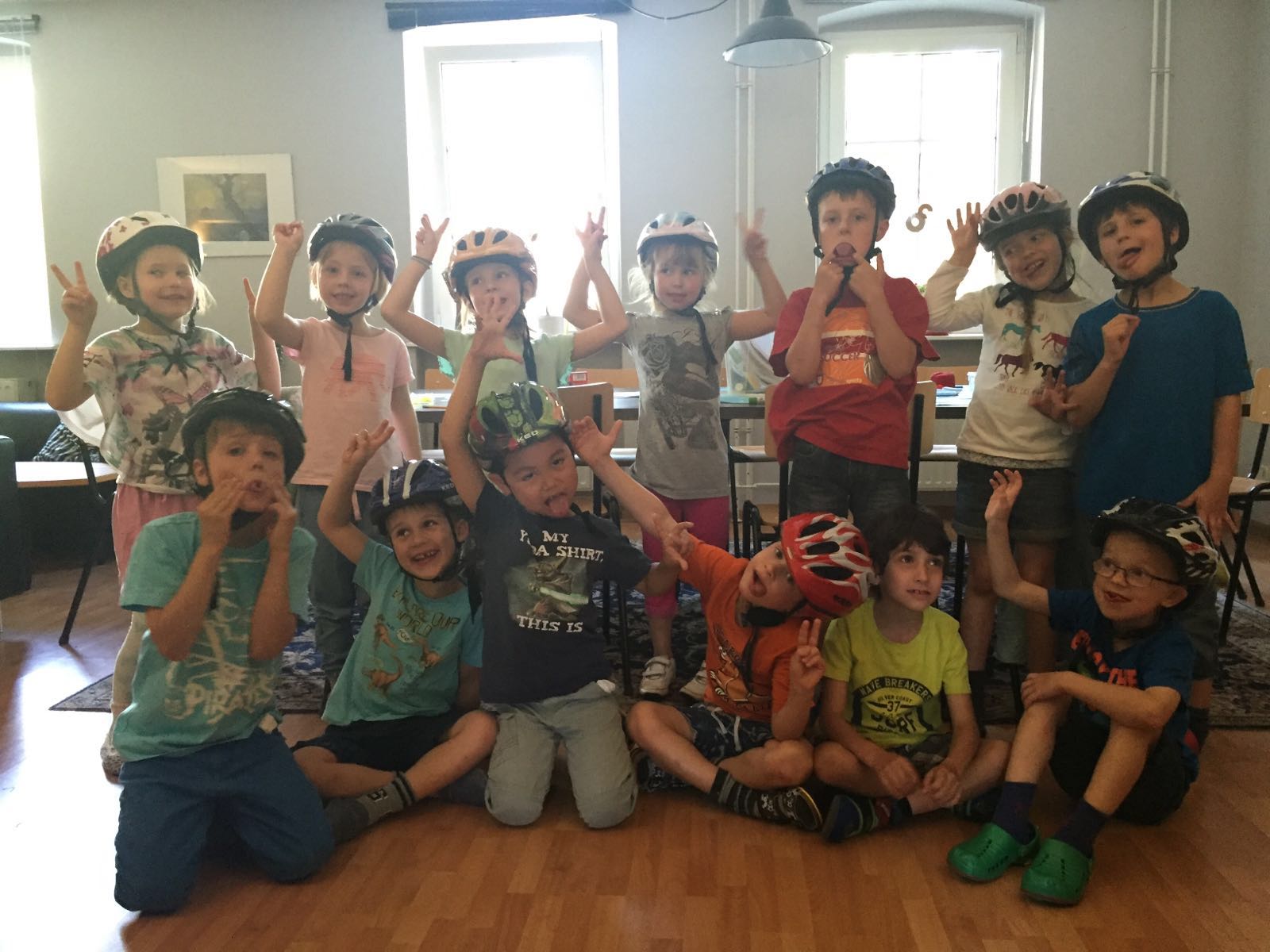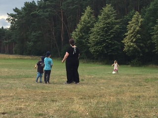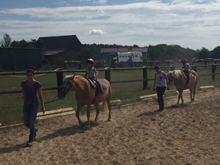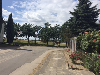 Die Nacht war ruhig, aber ungewohnt. Die Straße wird gerade gebaut, die Turmglocke läutet alle volle und halbe Stunde und einige Kinder bewegen sich im Schlaf mehr als am Tag 🙂 Leckeres Frühstück, dann das erste Highlight: Reiten. Mit unseren Fahrradhelmen ausgestattet, begaben wir uns zum Reiterhof Peters, wo 2 nette Mädchen die Kinder auf den Pferden führten. Einige trauten am Ende sogar, sich auf´s Pferd zu stellen … dann Mittagessen, kurze Verschnaufpause und wieder Abenteuer in der Umgebung. Um 17.00 Uhr war dann Traktorfahren angesagt … wir rumpelten durch Baitz …pflückten Kirschen … und erlebten den ersten heftigen Regenschauer. Wieder Abendessen … viele müde Krieger … voller Erlebnisse war Tag 2 🙂