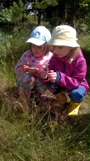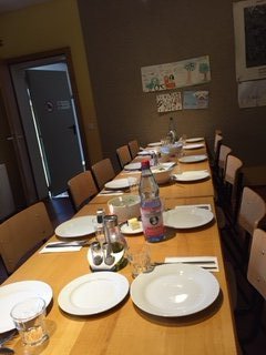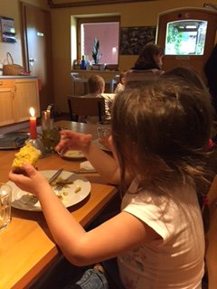 Dann gab es Mittagessen. Alle, schon sichtlich erschöpft, freuen sich dann auf eine paar Minuten ausruhen am Nachmittag, um dann wieder in Richtung, Wald, Wiese, Pferde oder Bach zu stromern.