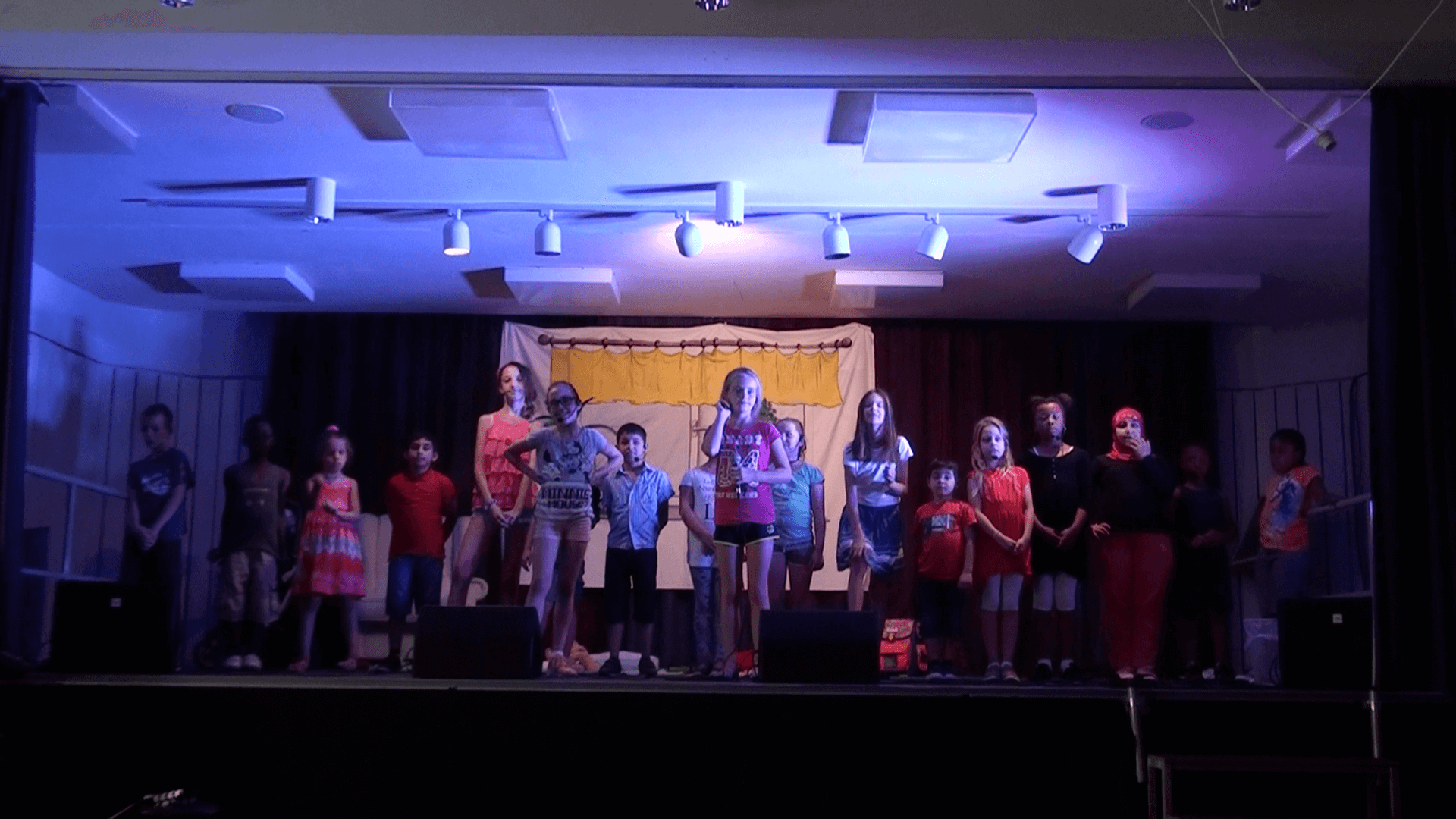 Gesagt, getan. Nachdem die Idee zum Stück feststand – ein neues Kind kommt in unsere Klasse – begann die Arbeit. In verschiedenen Gruppen wurde mit den Ferienkindern mit der Entwicklung von Szenen, Dialogen, Ansagen, Musik und Tänzen begonnen. Während die Gruppe Regie und Schauspiel sich ausgiebig mit dem Aufbau des Stücks und dem Einstudieren der einzelnen Szenen befasste, wurde in der Gruppe Musik zunächst am Text für das erste Lied gefeilt. Der Song sollte die Aufregung der Hauptfigur vor ihrem ersten Schultag in der neuen Klasse zum Ausdruck bringen. Hierzu wurden zunächst in Stichpunkten Inhalte gesammelt, die im Anschluss zu einem Text zusammengeschrieben, mit der dazu entwickelten Melodie zusammengeführt und anschließend gesanglich und instrumental geprobt wurden. Die Erzieher des KiJuNa haben sich dann zusammengetan und die Musik für den Song aufgenommen. Gesungen wurde bei Aufnahme von den Ferienkindern Israa, Viktoria und Emmanuela. Der erste Song war im Kasten und die Schauspielgruppe hatte die einzelnen Szenen fertig ausgearbeitet und einstudiert. Dann war Halbzeit. Drei Wochen waren zu diesem Zeitpunkt vergangen und wir lagen gut im Zeitplan. Die Kinder haben sich größte Mühe gegeben und das hat sich ausgezahlt. Schon zu diesem Zeitpunkt war klar, dass hier etwas Großartiges entstehen würde.