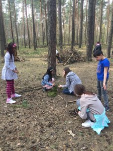 Auf dem gut 100 Kilometer entfernten Erlebnishof erwartete uns eine sehr schöne Anlage, freundliches Personal, viele Tiere und ein erstes leckeres Mittagessen. Nachdem die Zimmer aufgeteilt, die Koffer ausgepackt und ein reichliches Lunch verputzt war, stand die erste gemeinsame Aktion auf dem Programm: Das Waldquiz. In drei Teams wurde gewürfelt, gerannt und Fragen rund um das Thema Wald und Natur beantwortet. Gespickt mit einigen Kleinaktionen, wie das Anlegen eines kleinen Barfußpfades, war das Waldquiz ein toller Auftakt.
