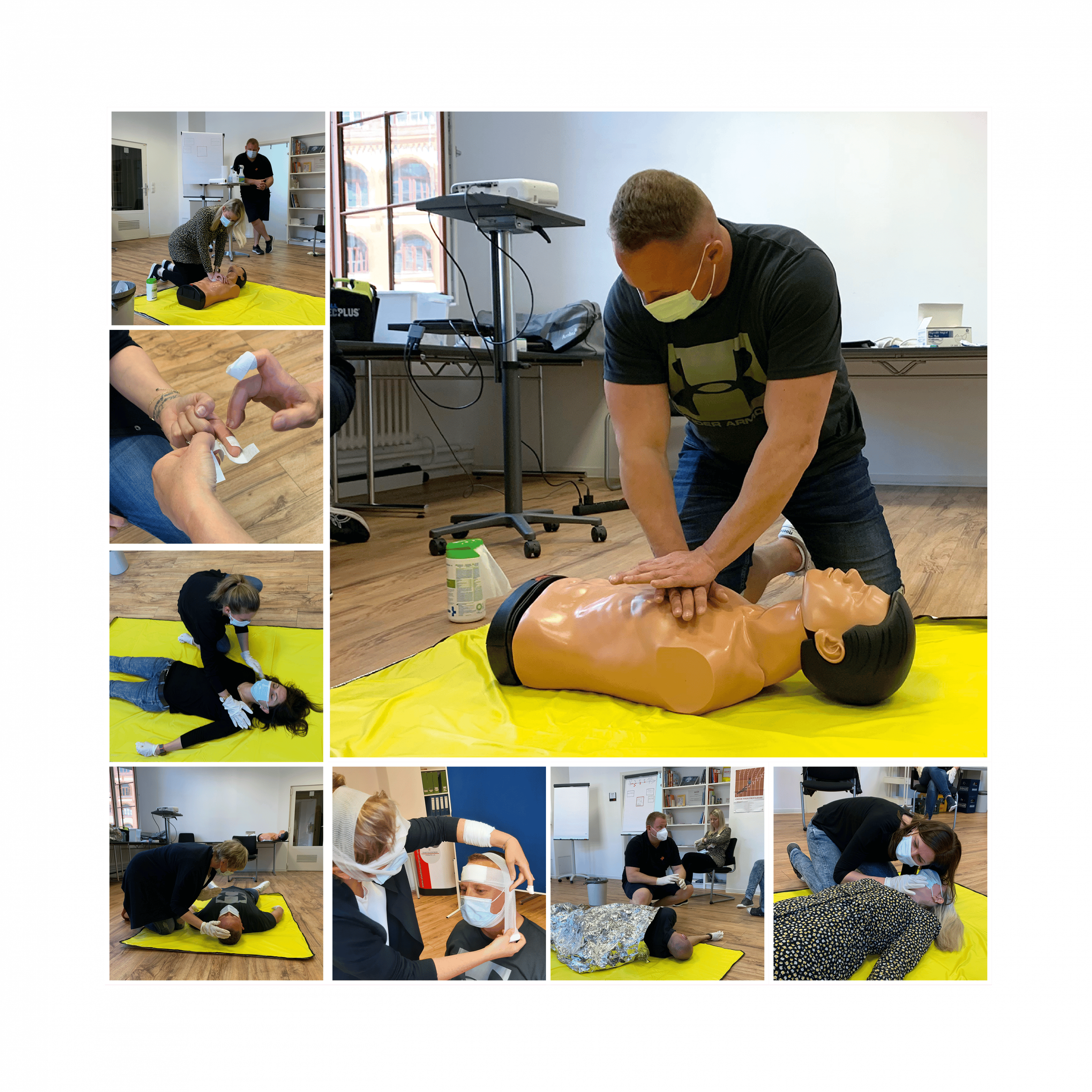 Ein Notfall in der Geschäftsstelle: Ein Kollege war bewusstlos geworden und ist in seinem Büro auf dem Boden aufgeschlagen. Glücklicherweise wurden sofort andere Kolleg*innen darauf aufmerksam und konnten wertvolle Ersthilfe leisten. Die Notambulanz kam und in diesem Fall ist alles gut gegangen. Wie wichtig Ersthilfe ist, wurde dadurch allen sehr bewusst und so manch einer musste zugeben, dass der eigene letzte Erste-Hilfe-Kurs schon Jahrzehnte zurückliegt. Eine Auffrischung für den Erste-Hilfe-Kurs wurde gewünscht und organisiert.