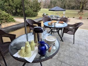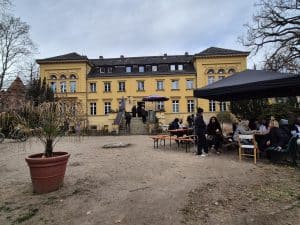 Der Himmel grau, der Wind kräftig, immer wieder ein paar Tropfen Regen – dieser Tag könnte viele Gründe liefern, zu Hause zu bleiben. Doch im Gutshaus Lichterfelde passiert das Gegenteil. Und hin und wieder schickt schließlich doch die Sonne ein paar Strahlen in den Garten.
