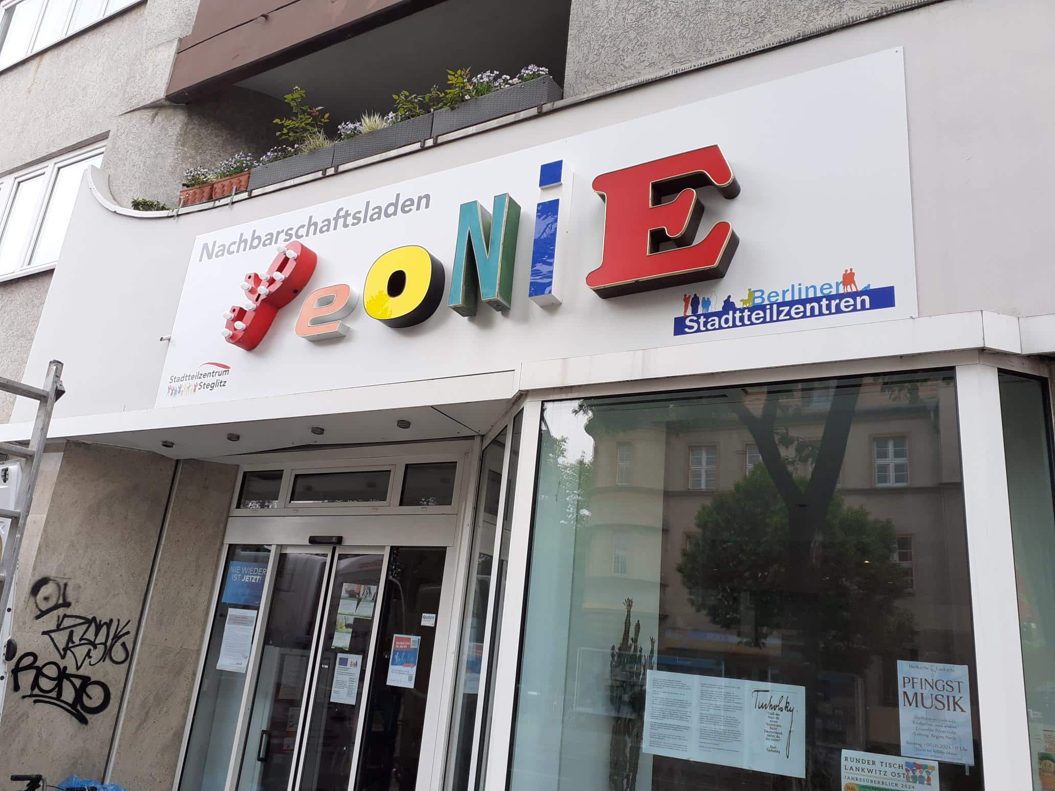Seit über drei Jahren existiert der Nachbarschaftsladen Leonie in der Leonorenstraße 85, nachdem er am 28. Mai 2021 offiziell seine Türen für Besucher*innen eröffnete. Der ehemalige Friseursalon „Coiffeur König“ wurde im Sommer 2020 angemietet und musste erst grundsaniert bzw. umgebaut werden.
