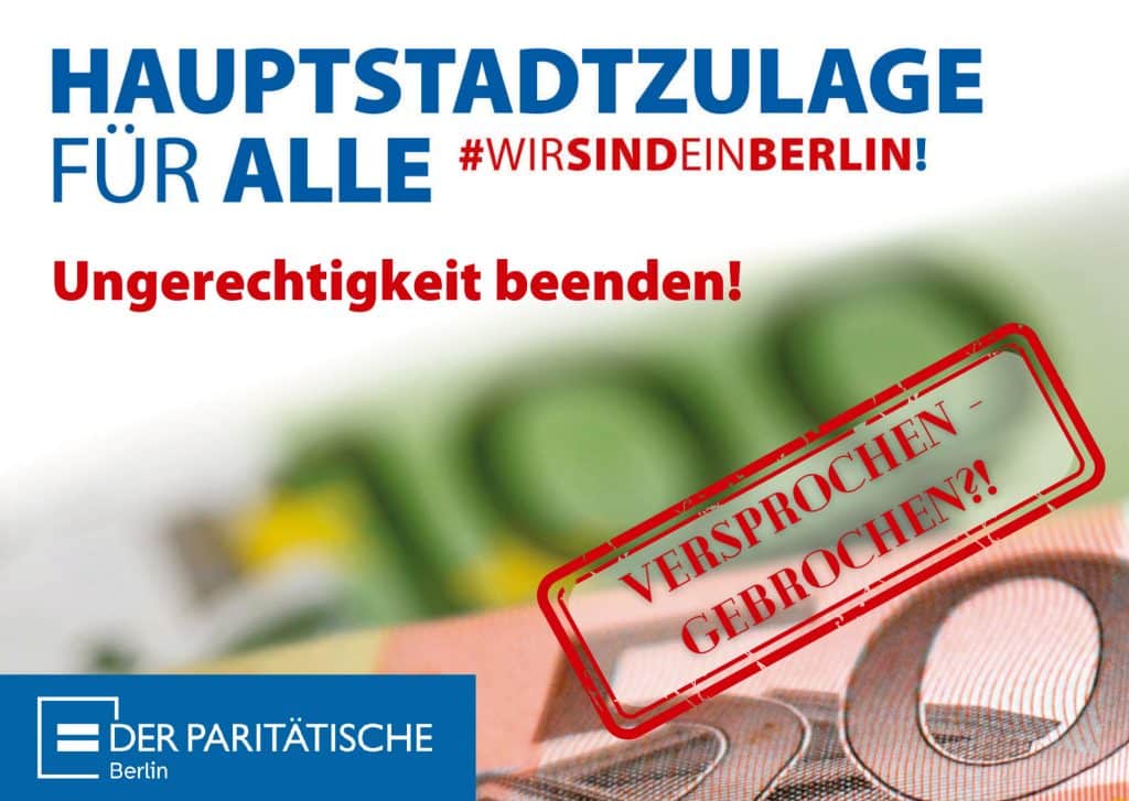 Demonstration am 11. April 2024, 12.00 Uhr Versprochen – gebrochen. Gleicher Lohn für gleiche Arbeit? Fehlanzeige! Wie bekannt wurde, plant das Land Berlin, die Hauptstadtzulage auch künftig nur an Beschäftigte des öffentlichen Dienstes zu zahlen. Mitarbeitende...