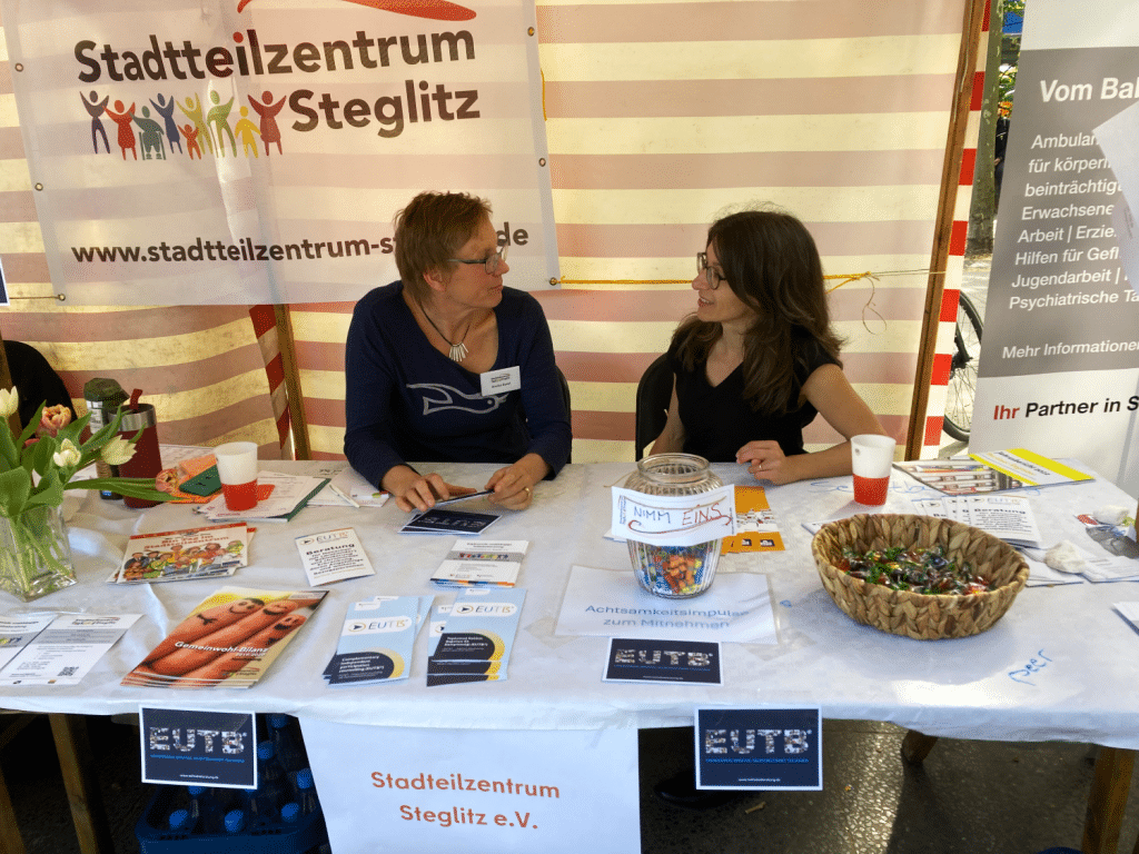 Am 3. Mai 2024 fand das Straßenfest „Aktionstag BUNT VERBINDET" auf dem Hermann-Ehlers-Platz statt, unter anderen mit der Ergänzenden Unabhängigen Teilhabeberatung (EUTB) des Stadtteilzentrum Steglitz e.V. Besonders schön an der neuen Location: Die kreisförmige...