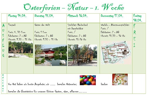 Noch ein paar Tage und dann beginnen die Osterferien. Eine kleine Pause vom Schulalltag, nicht jedoch von der Ergänzenden Förderung und Betreuung am Insulaner. Ein wirklich buntes Programm, dass sich sehen lassen kann wird geboten: Osterferien EFöB am Insulaner 1...