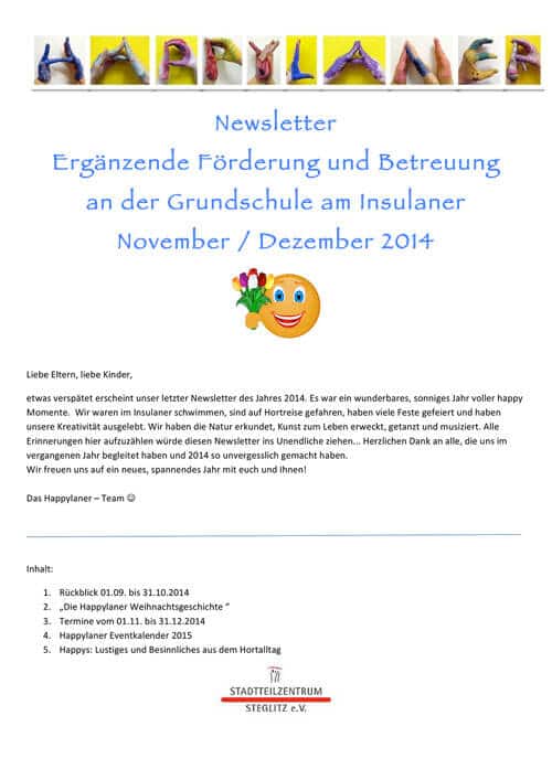 Am 15. Dezember kommt ein Gruß aus der EFöB am Insulaner. Hier haben sich die KollegInnen überlegt, dass sie Eindrücke aus ihrer Arbeit zeigen möchten. Hier sind Beispiele aus Aktionen, Halloween und vom Basteln. Bei den Happylanern ist wirklich immer sehr viel los...