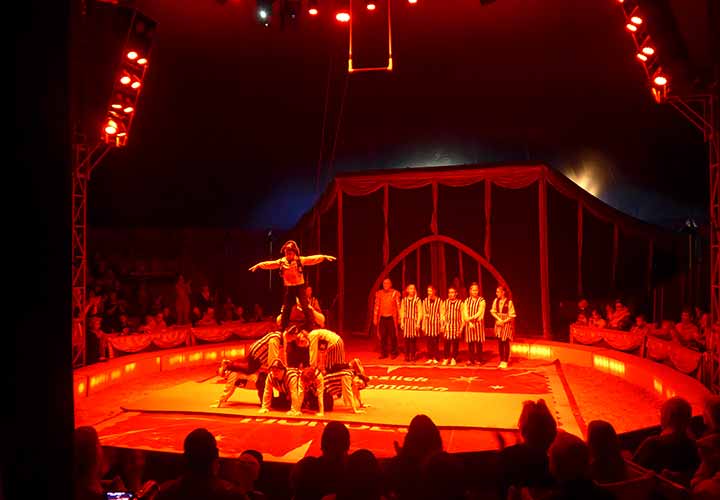 Die Musik ertönt und Artisten laufen in die Manege. Es ist die Bodenakrobatik-Gruppe. Sie zeigen unterschiedliche Übungen, z.B. Handstand, Spagat oder bilden große Pyramiden. Der Applaus lässt die Gesichter erstrahlen. Diesen Erfolg haben sich die Schüler und...